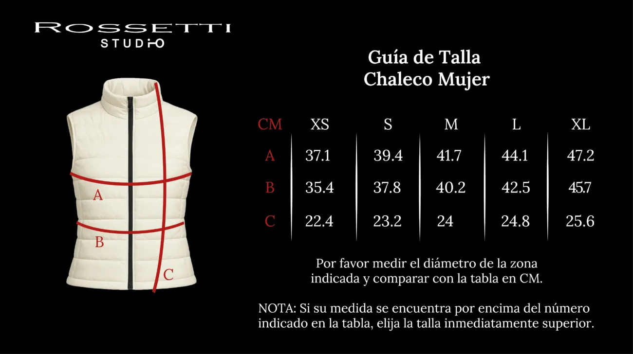 GUIA DE TALLAS CHALECO ACOLCHADO MUJER