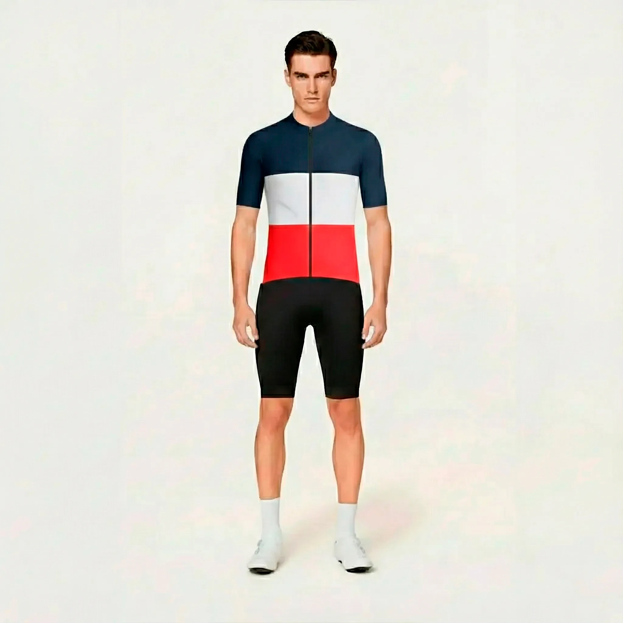 Combo Jersey más bib short de ajuste perfecto sin costuras. Este bib no tiene banda siliconada, creando un ajuste más limpio y cómodo.